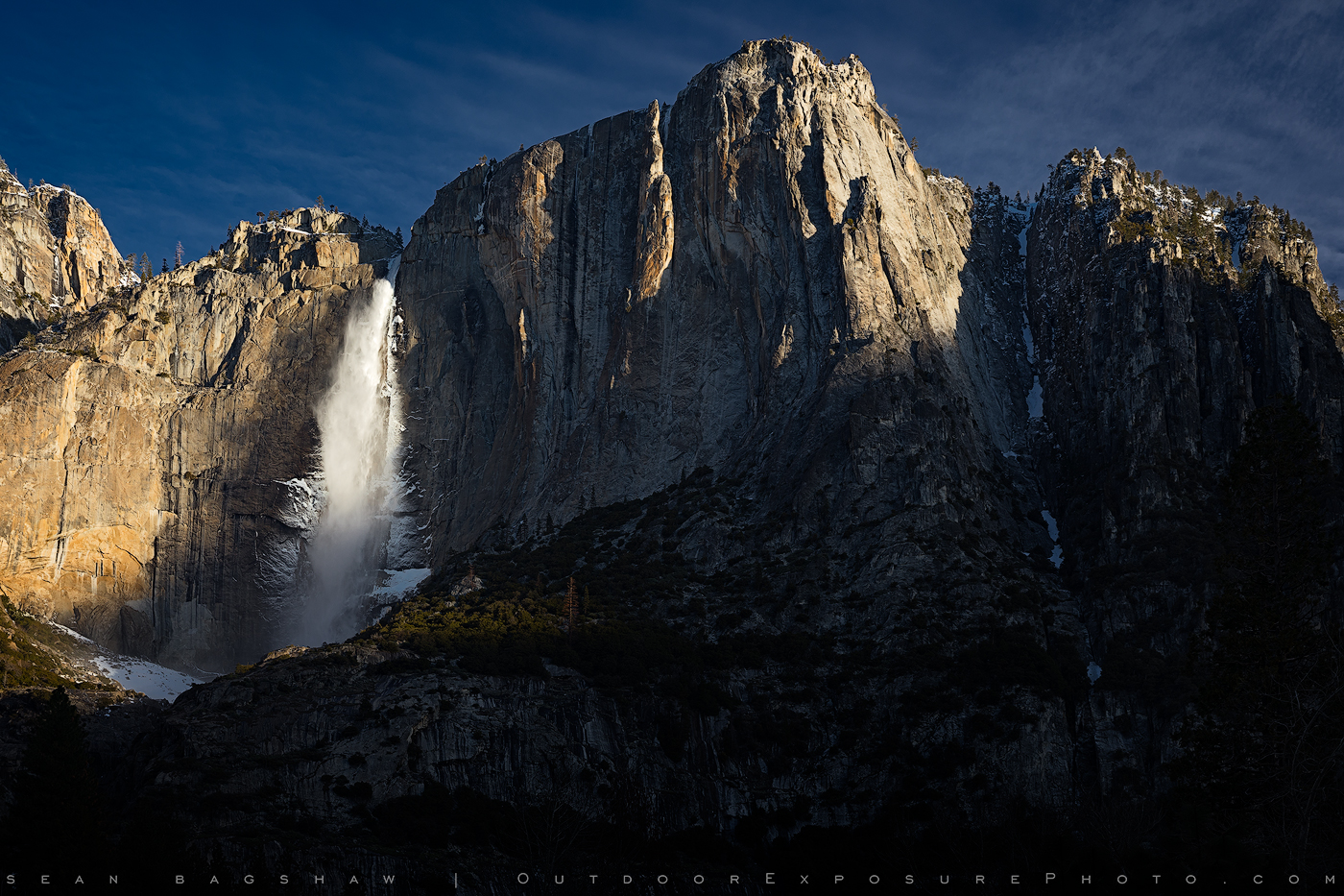 Yosemite Falls resplendent in frost and glancing morning sun with the valley still shrouded in shadow. I took this while out on road trip with my good buds, David Cobb and Zack Schnepf last week. We shacked up in the Falcon for seven days. More bad jokes, laughing and flatulence than most people could handle.