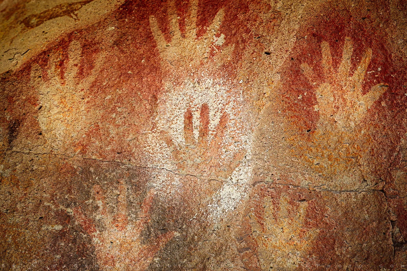 Cueva de las Manos (Spanish for Cave of Hands) is a series of caves located in the province of Santa Cruz, Argentina, south of the town of Perito Moreno. The art in the cave dates from 13,000 to 9,000 years ago.