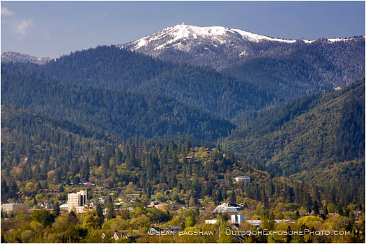 Ashland, Oregon is a town of 20,000 nestled below Mt. Ashland in the Siskiyou mountain range. It is also surrounded by the rolling hills of the Rogue Valley. In spring the hills are covered with purple vetch and many other varieties of wildflowers. Hikes in the area provide grand vistas, bird and wildlife watching and secluded trails.