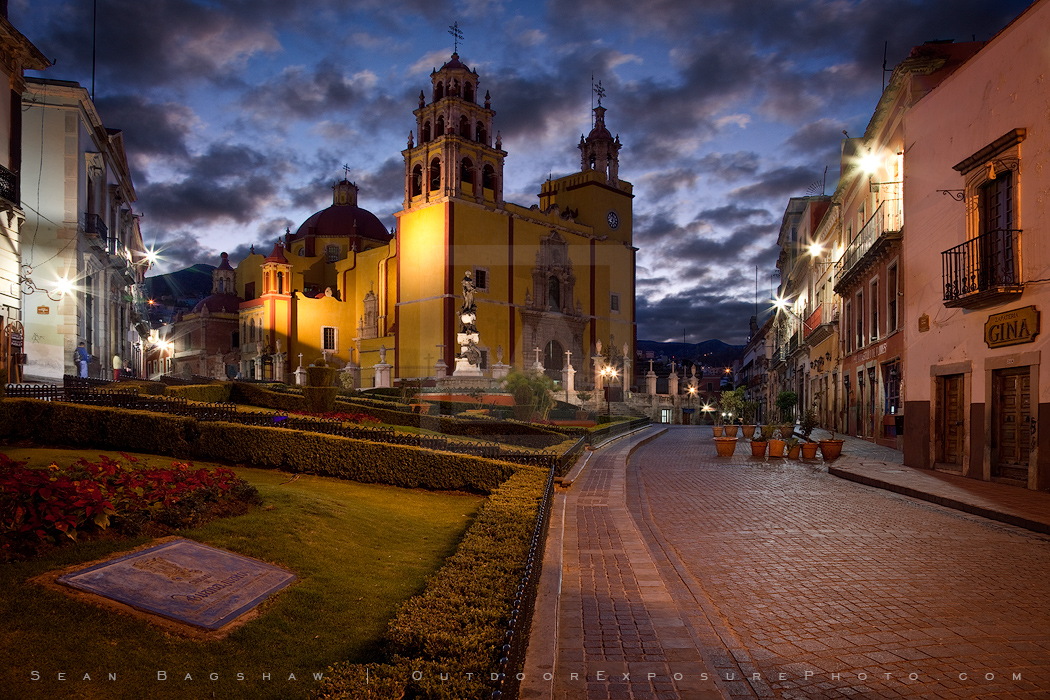 Basilica de Nuestra Senora de Guanajuato; Guanajuato; Mexico; church; city; cityscape; dawn; morning; plaza; square; temple;