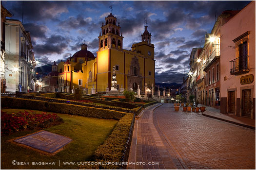Basilica de Nuestra Senora de Guanajuato; Guanajuato; Mexico; church; city; cityscape; dawn; morning; plaza; square; temple;