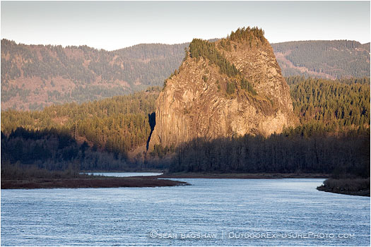 beacon rock, Columbia River, Oregon, rock, river, water, formation, horizontal, color image, light, huge, forest, trees
