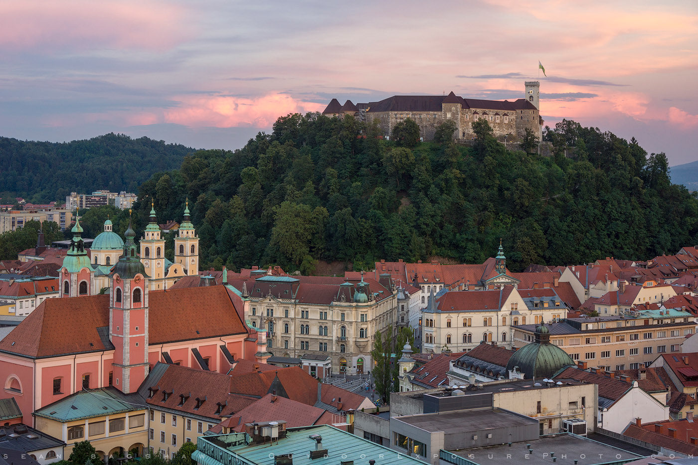 The impressive Ljubljana Castle rises above the downtown area.