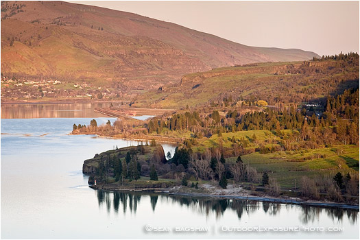 columbia gorge, Columbia River, Oregon, spring, lush, green, river, mountain, distance, quiet, horizontal, color image, reflection, Columbia River Gorge, trees