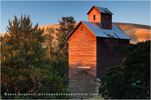 Oregon; agriculture; barn; columbia plateau; farm; grain silo; homestead; morning; old building; rural; sunrise; wheet