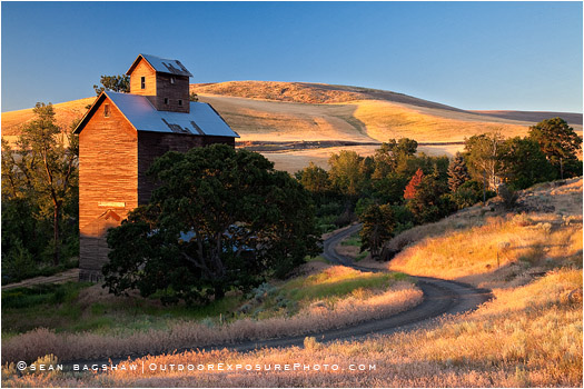 Oregon; agriculture; barn; columbia plateau; farm; grain silo; homestead; morning; old building; rural; sunrise; wheet