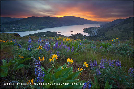 Sunrise; Columbia River; Wild Flowers; Oregon; Columbia Gorge