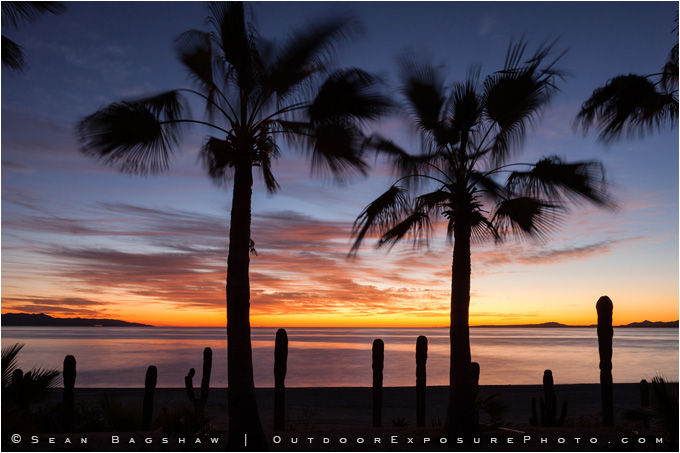 Baja; Mexico; Sea of Cortez; beach; dawn; palm; palm trees; sunrise