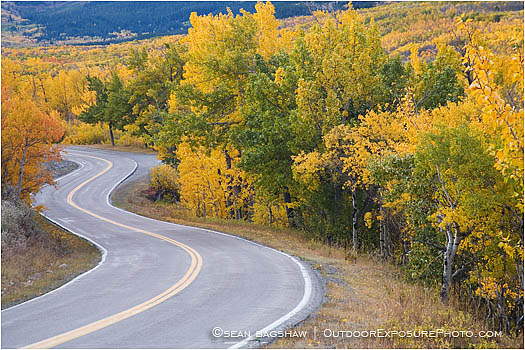 2007, Montana, Fall, Foliage, Forest, Color, Yellow, Aspen, Trees, Grove, Country Road, Highway, Hwy, Yellow Line,