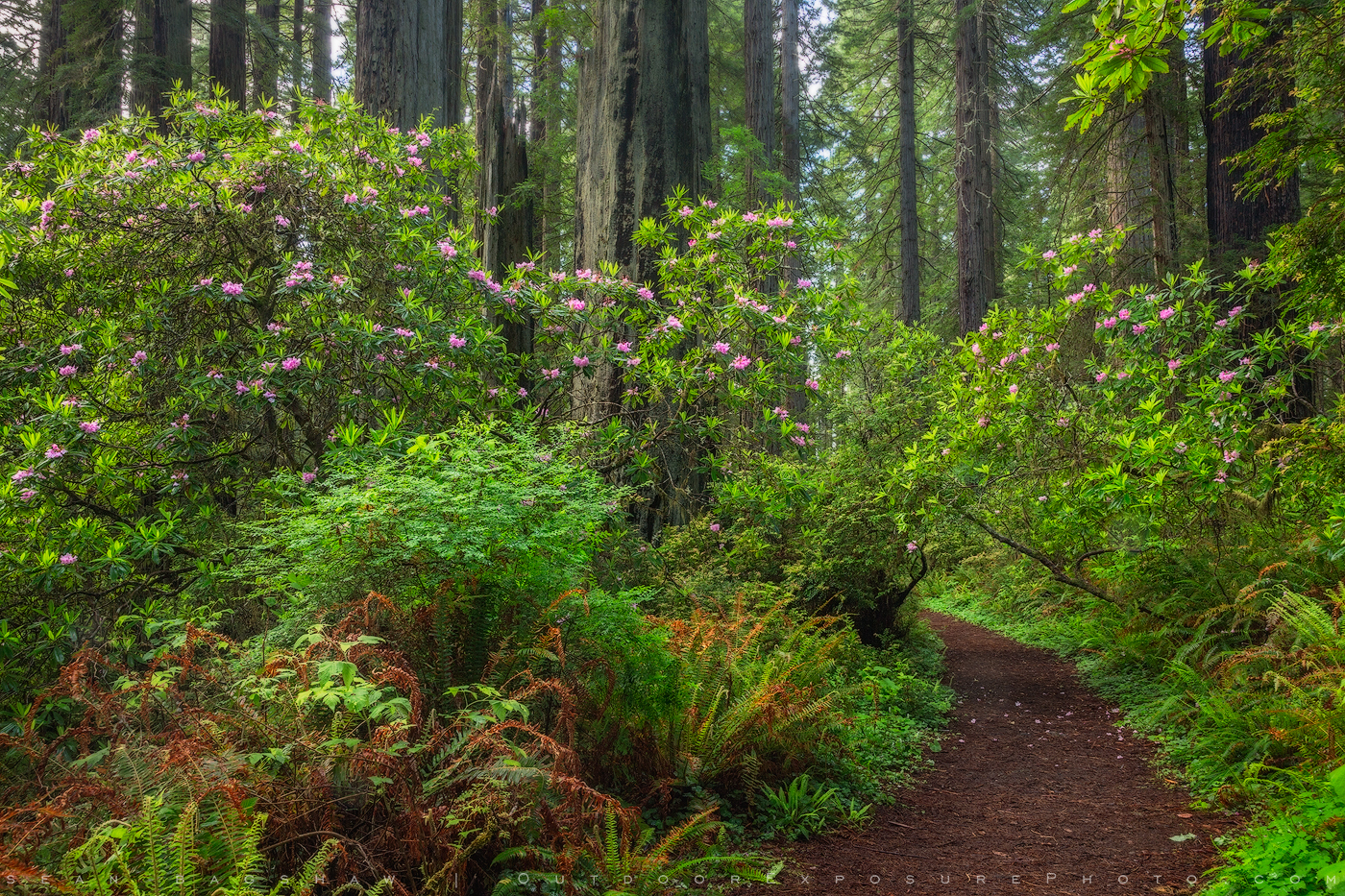 Big rhododendron bloom along the Damnation Trail a few years ago. Del Norte Coast Redwoods State Park. Soft light filtered by coastal moisture in the air.