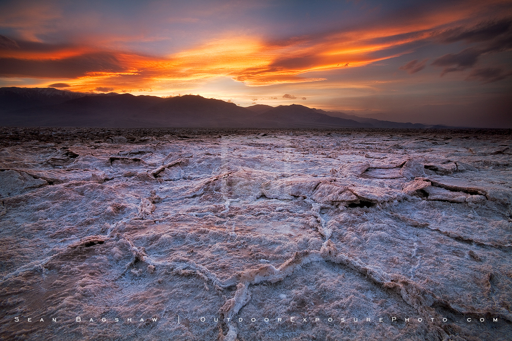 Scorched ground laying at the foot hills of Death Valley’s surrounding mountains.