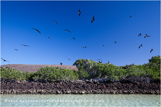 Baja, Espiritu Santo, frigate birds, island, Mexico, nesting, ocean, rookery, Sea of Cortez