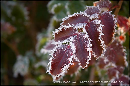 leaves, leaf, frost, frozen, ice, cold, edges, lined, winter, green, red, horizontal, color image
