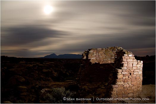 The full moon over an Anasazi ruin in Hovenweep National Monument, Utah.