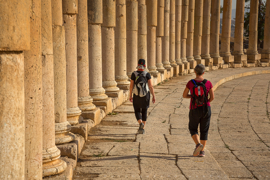 My wife and sister in law exploring the ruins of the ancient city of Jerash, Jordan. I love the curved lines and memories this image conjures.