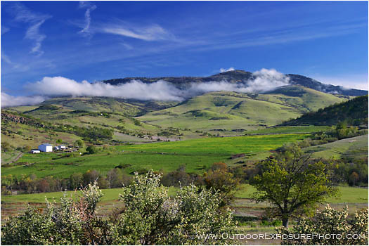 Clouds are seen around Grizzly Peak surrounded by the bright spring colors in Southern Oregon.