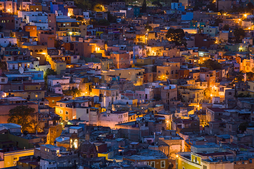 guanajuato, mexico, illumination, night, twilight, city, town, buildings, abstract, glowing, horizontal, color image