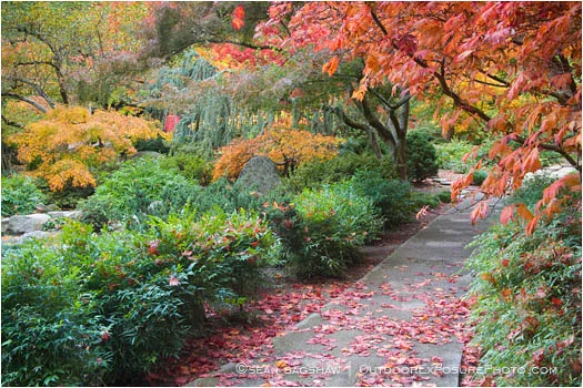 A path through the Japanese Garden during the fall in Lithia Park in Ashland, Oregon.