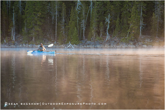 Kayaking on Waldo Lake, one of the clearest mountain lakes in the Oregon Cascade range.