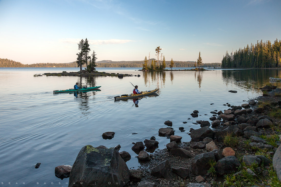 Friends paddling one morning on Waldo Lake, in central Oregon.