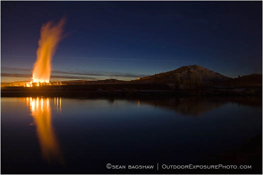 Night view of a co-generation plant outside of Klamath Falls, Oregon.