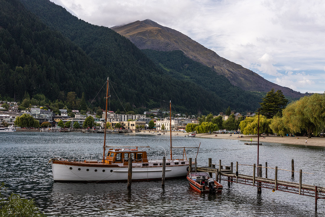 A summer view looking back toward downtown Queenstown, New Zealand.