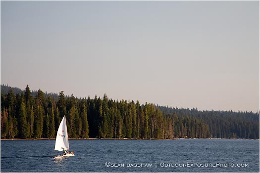 A sail boat out on the water at Lake of the Woods in Southern Oregon.