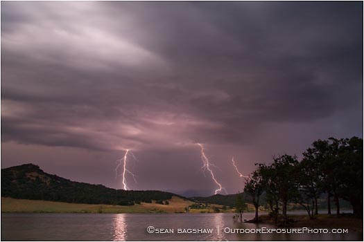 A powerful lightning storm over Emigrant Lake in Ashland, Oregon.