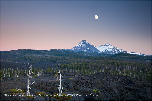 McKenzie Pass; Middle Sister; North Sister; Oregon; earth shadow; flow; lava; moon; mountain; summer; twilight; volcanic; volcano