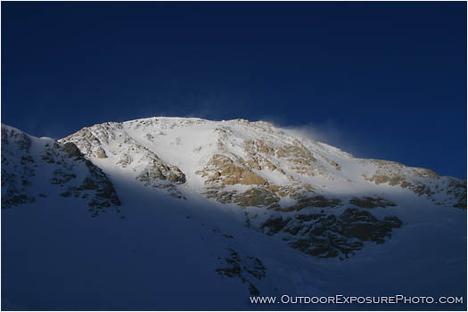 Midnight sun hits the summit of Denali, or Mt. McKinley, in Denali National Park, Alaska.