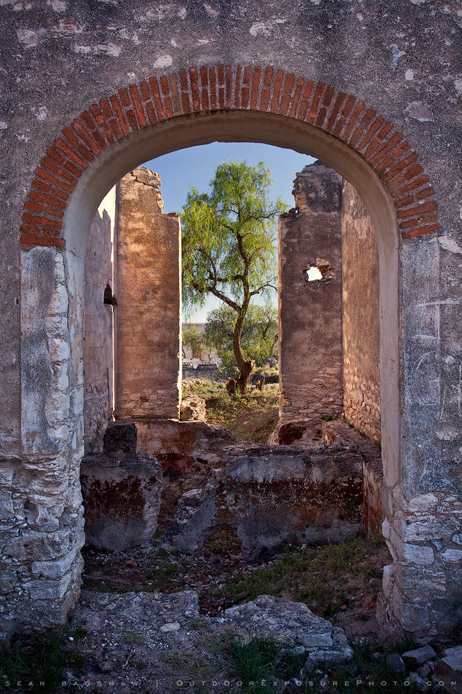 A view from inside the abandoned Spanish colonial mine buildings at Mineral de Pozos, Mexico.