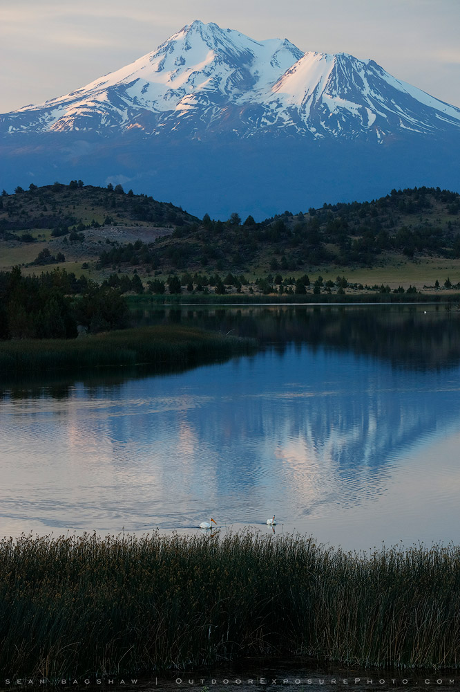 Trout Lake, California, with Mt. Shasta reflected on the surface.