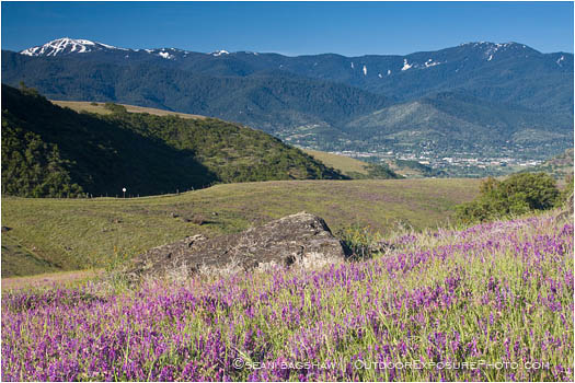 A purple vetch field is overlooked by Mt. Ashland in Ashland, Oregon.
