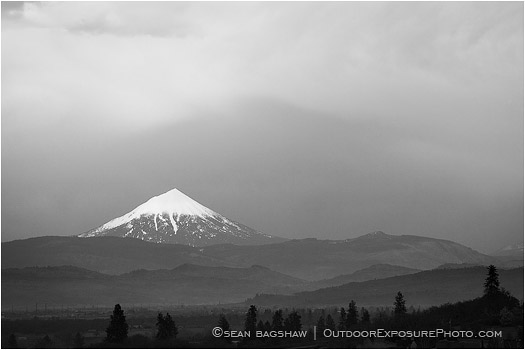 Mt. McLoughlin is seen on a overcast, stormy day in Medford, Oregon.
