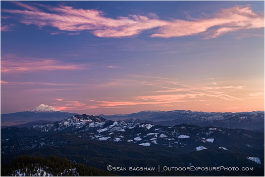 Mt. Shasta at sunset in the Siskiyou Mountains in Southern Oregon.