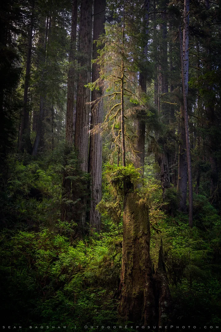 Growing out of the top of the trunk of an old dead tree allows it to reach valuable sunlight filtering through the canopy. It’s lucky for now, but I think its days are limited. As it continues to grow and the trunk continues to decay it will eventually all come crashing down.