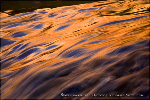 Zion National Park, Utah, water, reflection, reflected, orange, cliffs, virgin, river, ripples, waves, pattern, abstract, vibrant, horizontal, color image