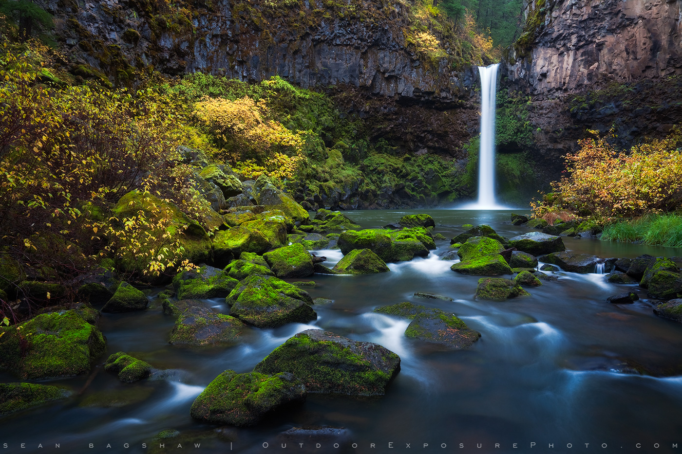 Outlet Falls is located in a remote part of southern Washington. It isn’t marked and doesn’t see many visitors. The scramble down the cliff to the creek bed isn’t particularly user-friendly but the deep canyon setting is a visual feast.