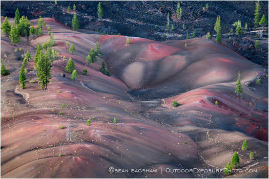 The volcanic activity here at Lassen Volcanic National Park has created this interesting landscape, like the painted dunes, seen here in California.