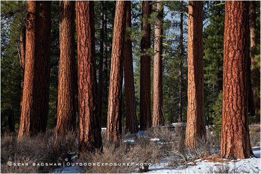 Horizontal; Nature; Oregon; Ponderosa Pine Tree; Rural Scene; Scenics; Tree Trunk; day; forest; no people; outdoors; pine; ponderosa; snow; tree; winter