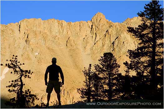 Sierra, mountains, mountain, california, nevada, midnight lake, trees, silhouette, cliffs, facing, one, person, lone, determined, horizontal, color image