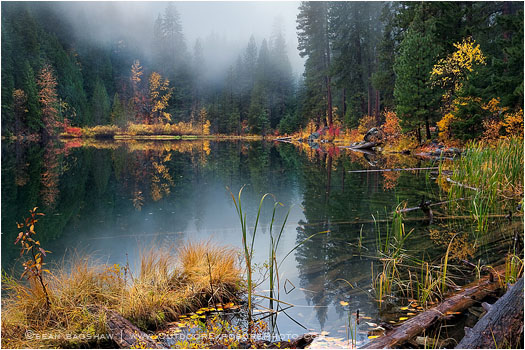 Hidden Lake; Stevens Pass; Washington; autumn; fall; fog; forest; lake;