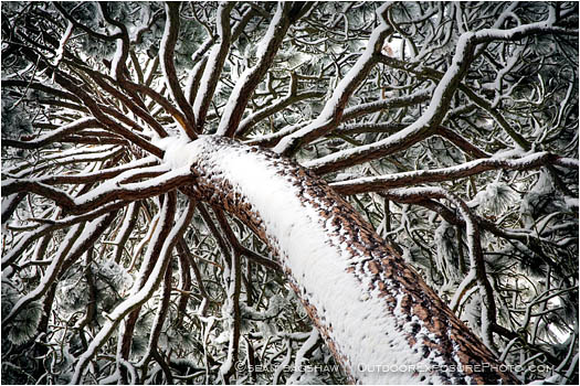 A pine tree provides a beautiful resting place for freshly fallen snow.
