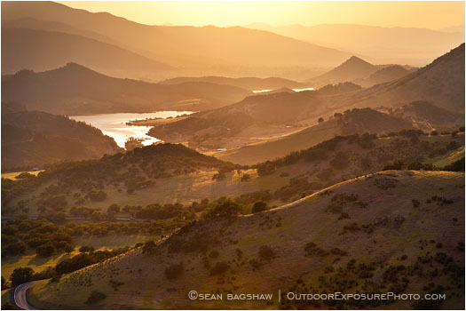 The setting sun casts a golden hue over the Rogue Valley from the view from Greensprings in Ashland, Oregon.