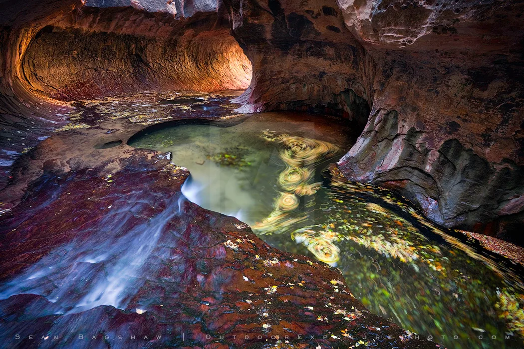 An 11 mile round trip canyon hike is required to visit the Subway. Its unique shapes, colors and light qualities create amazing conditions for photography.