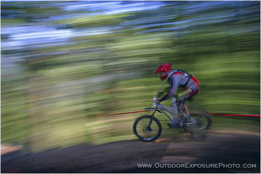 A mountain bike racer speeds downhill during a competition in Ashland, Oregon.