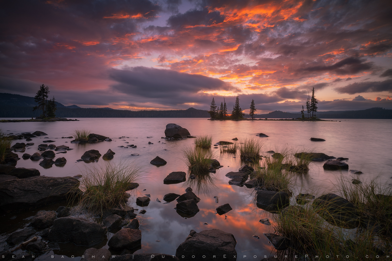Sunset is the favorite time for Waldo Lake campers to sit along the beach and marvel at its glory.
