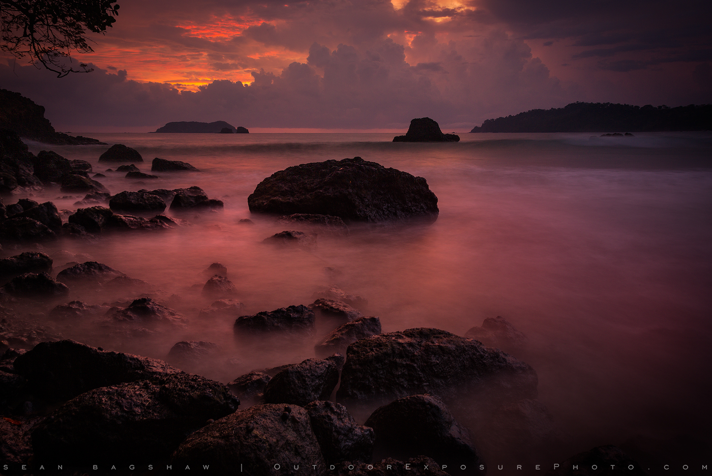 Working on some images to submit for a book on Costa Rica gave me a chance to revisit photographs that were forgotten in my archives from several years ago. This image of a moody sunset at Playa Manuel Antonio, Costa Rica apparently fell through the cracks the first time around. I remember the sky that night was ominous and mesmerizing. I took advantage of the darkness to take a 25-second exposure and create the velvety surf.